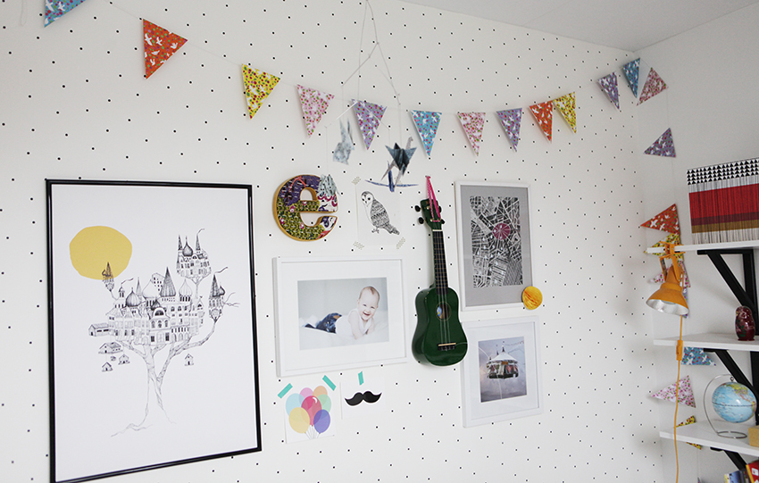 | Ett skåp som fått nytt liv med färg..Och mini-skinnjackan som hänger där under masken har Annika själv designat, tryckt tyget och sytt,. |